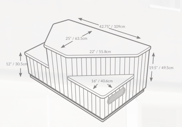 Depending on your purchased model, SafeAxissTM Steps may be included. Below are the dimensions of the steps to help you pick the best hot tub location in your backyard.